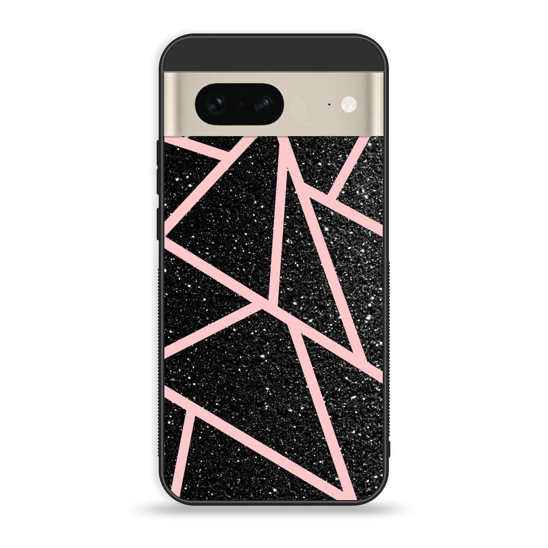 Google Pixel 7a - Black Sparkle Glitter With RoseGold Lines - Premium Printed soft Bumper Shock Proof Case