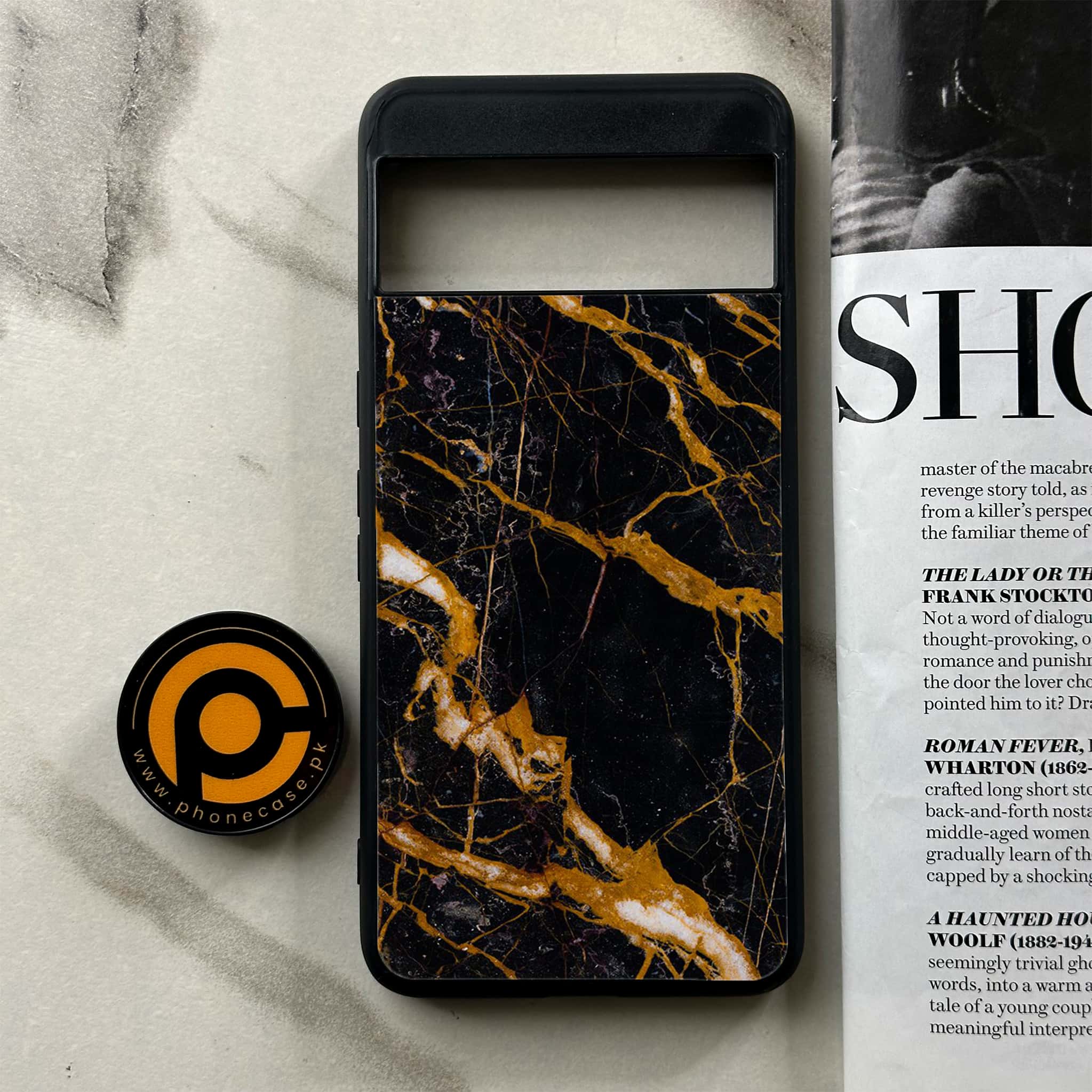 Google Pixel 8a - Golden Black Marble - Premium Printed soft Bumper Shock Proof Case
