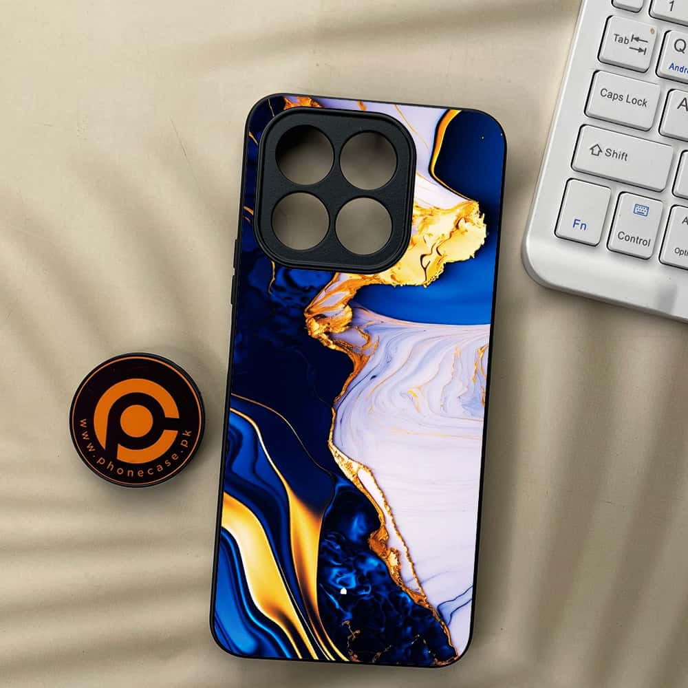 Honor X7c - Blue Golden Marble - Premium Metal Printed soft Bumper shock Proof Case