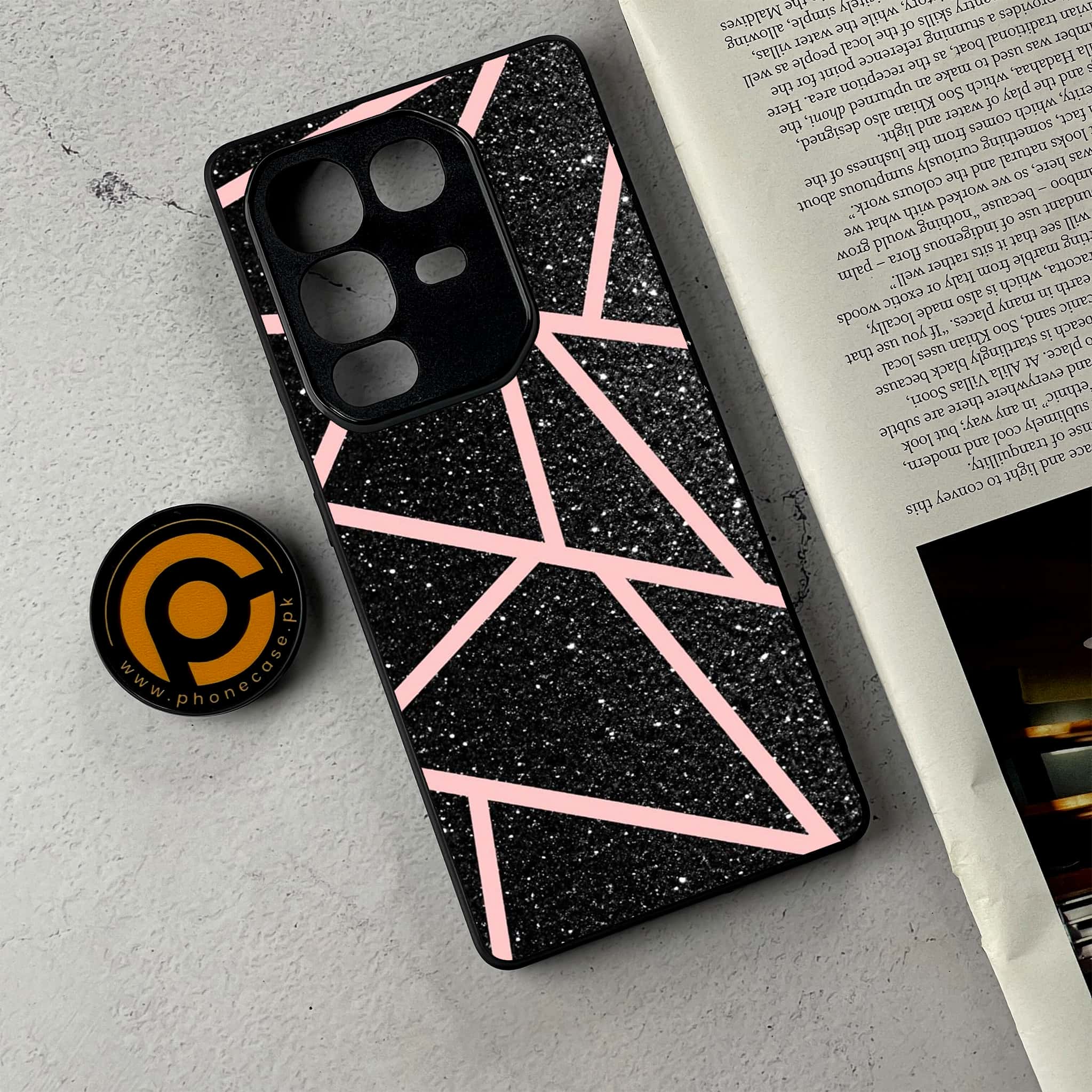 Infinix Note 50 Pro - Black Sparkle Glitter With RoseGold Lines - Premium Metal Printed Soft Bumper Shockproof Case
