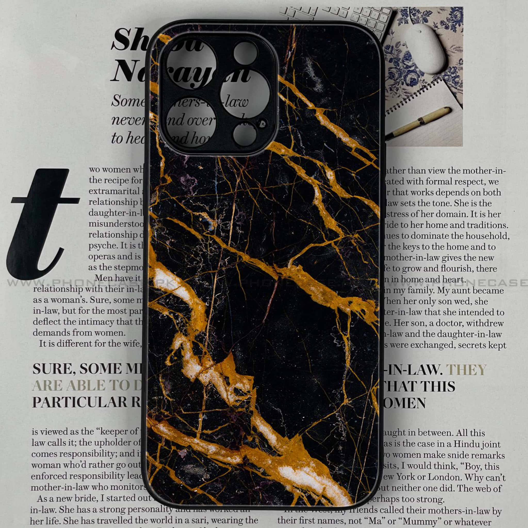 iPhone 13 Pro Max - Golden Black Marble - Premium Metal Printed soft Bumper shock Proof Case