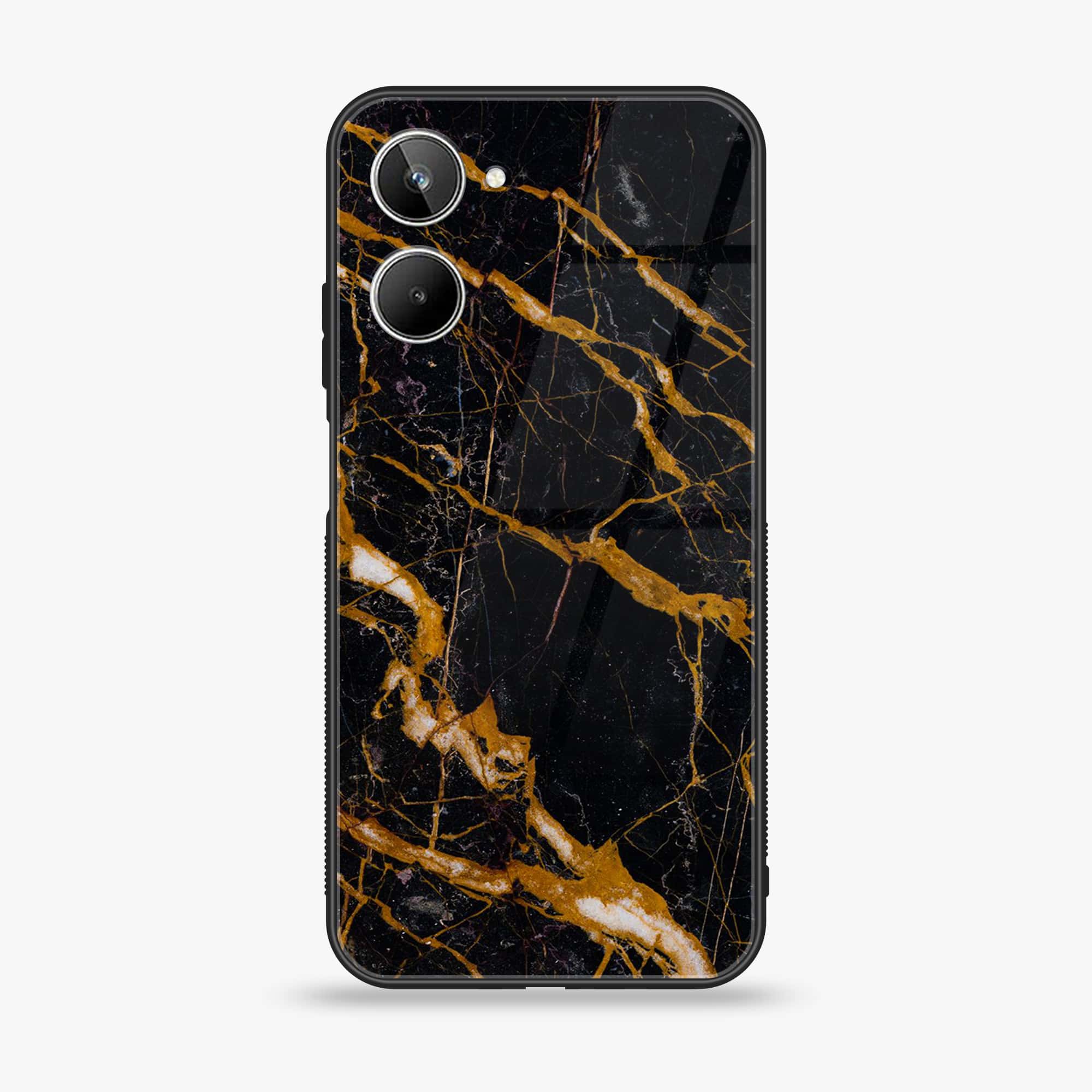Realme 10 4G - Golden Black Marble - Premium Printed Glass soft Bumper Shock Proof Case