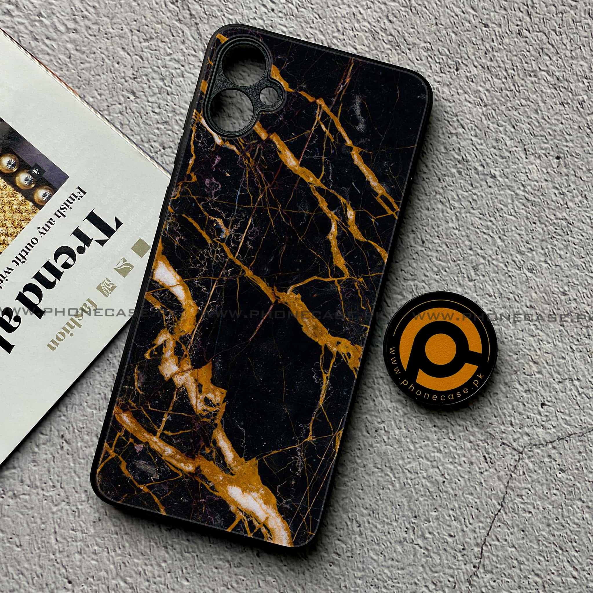 Samsung Galaxy A05 - Golden Black Marble - Premium Metal Printed soft Bumper shock Proof Case