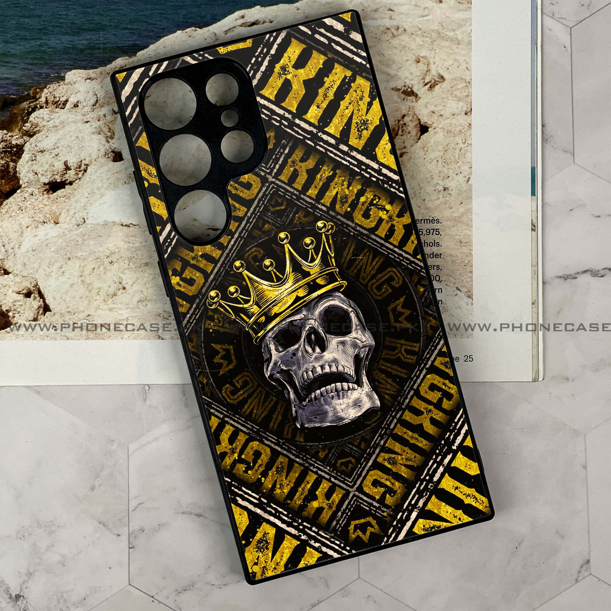 Samsung Galaxy S23 Ultra - King Skull Golden - Premium Metal Printed soft Bumper shock Proof Case