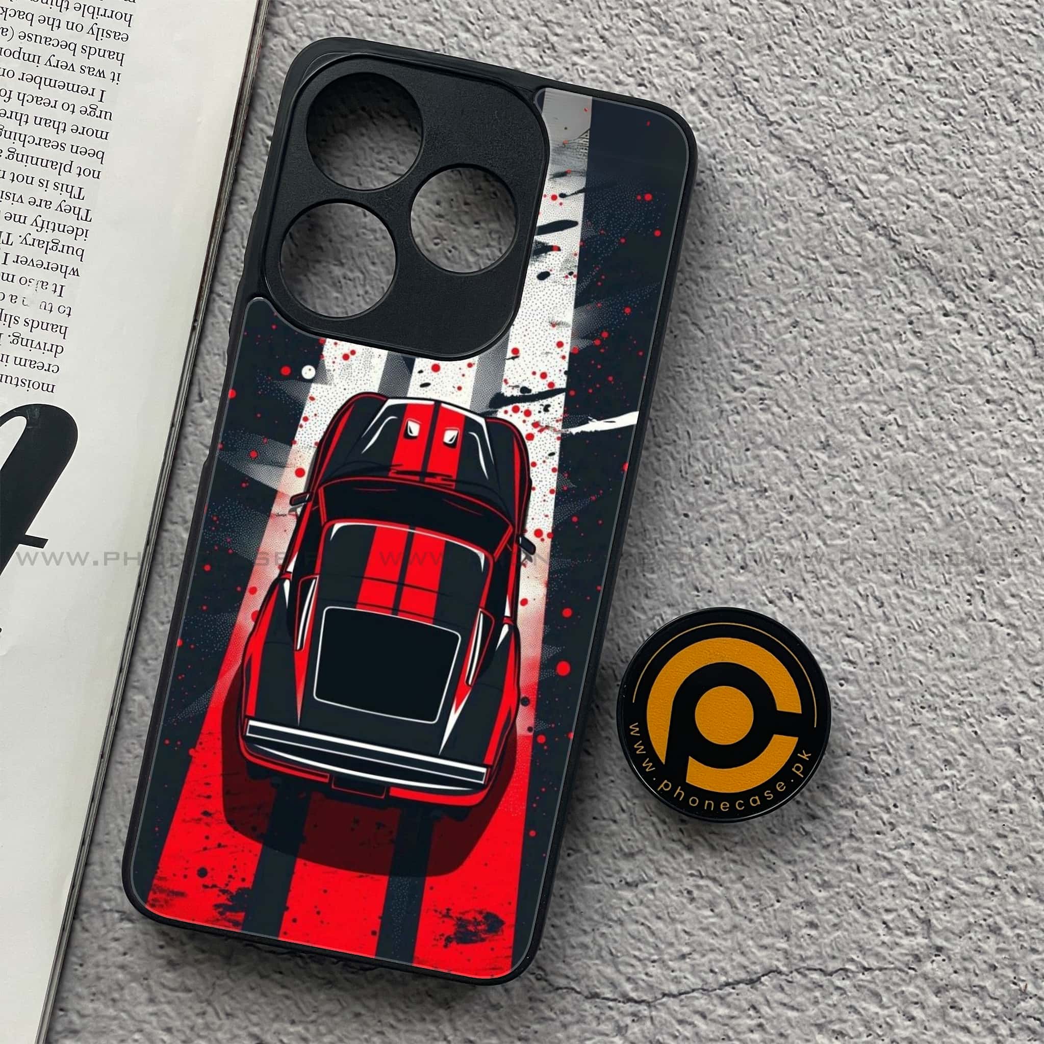 Tecno Spark 10C - Top-Down Track - Premium Printed Glass soft Bumper shock Proof Case