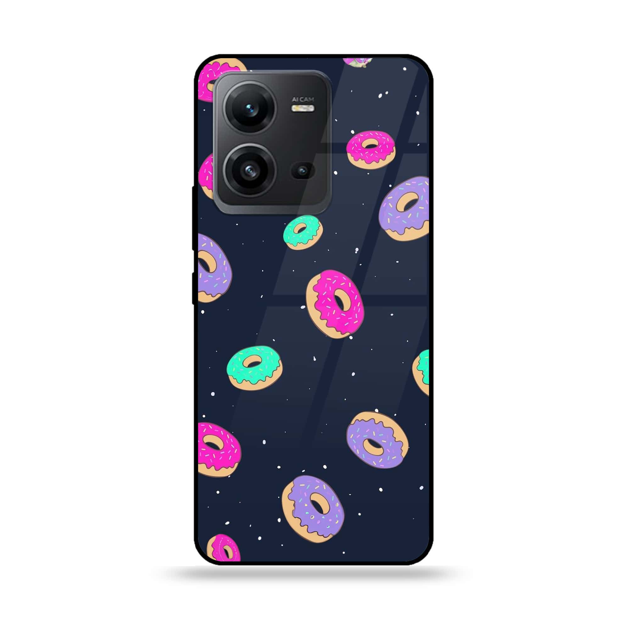 Vivo V25 5G - Colorful Donuts - Premium Printed Glass soft Bumper Shock Proof Case