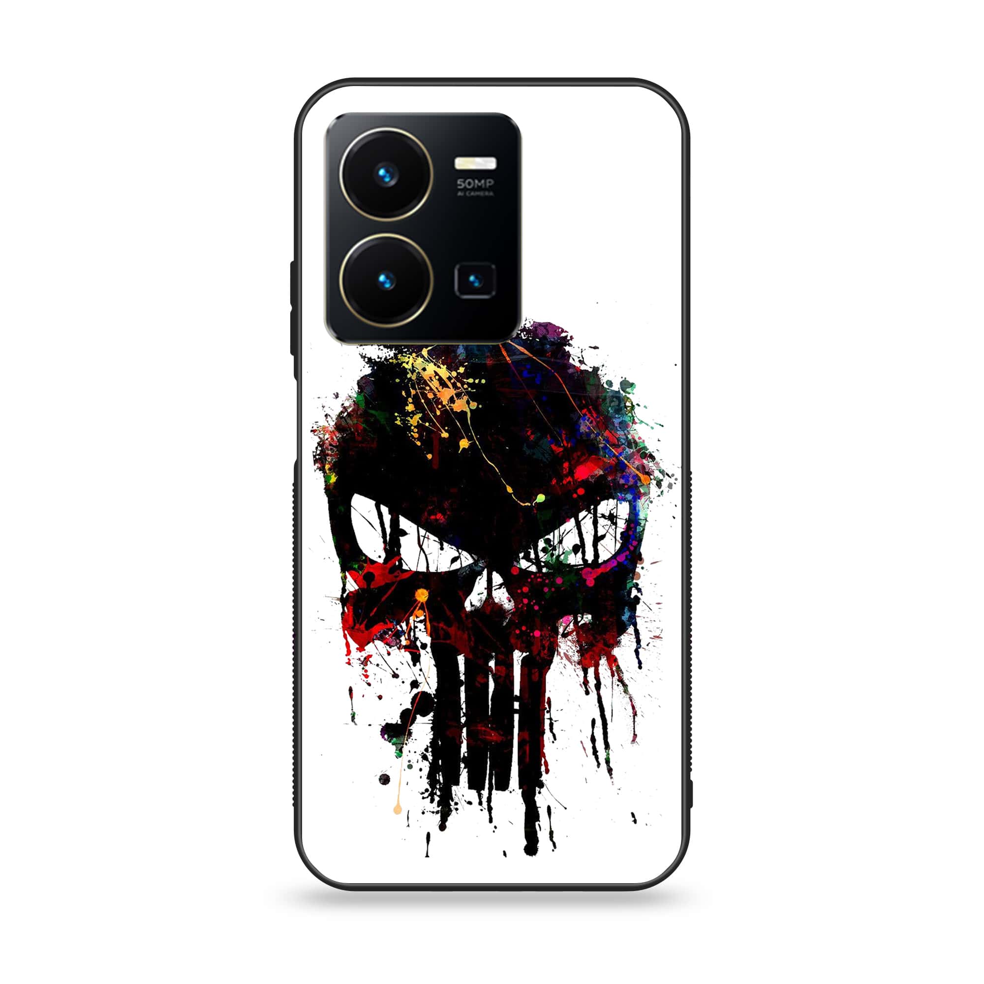 Vivo Y35 - Punisher Skull Design - Premium Printed Glass soft Bumper Shock Proof Case