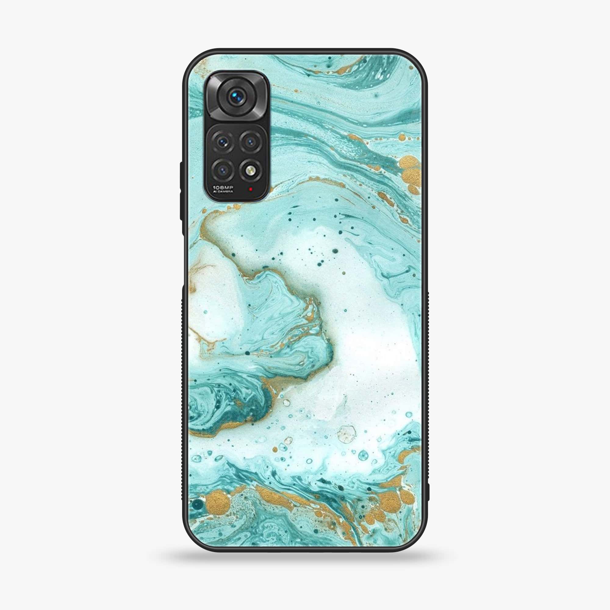 Xiaomi Redmi Note 11s - Aqua Blue Marble Design - Premium Printed Glass soft Bumper Shock Proof Case